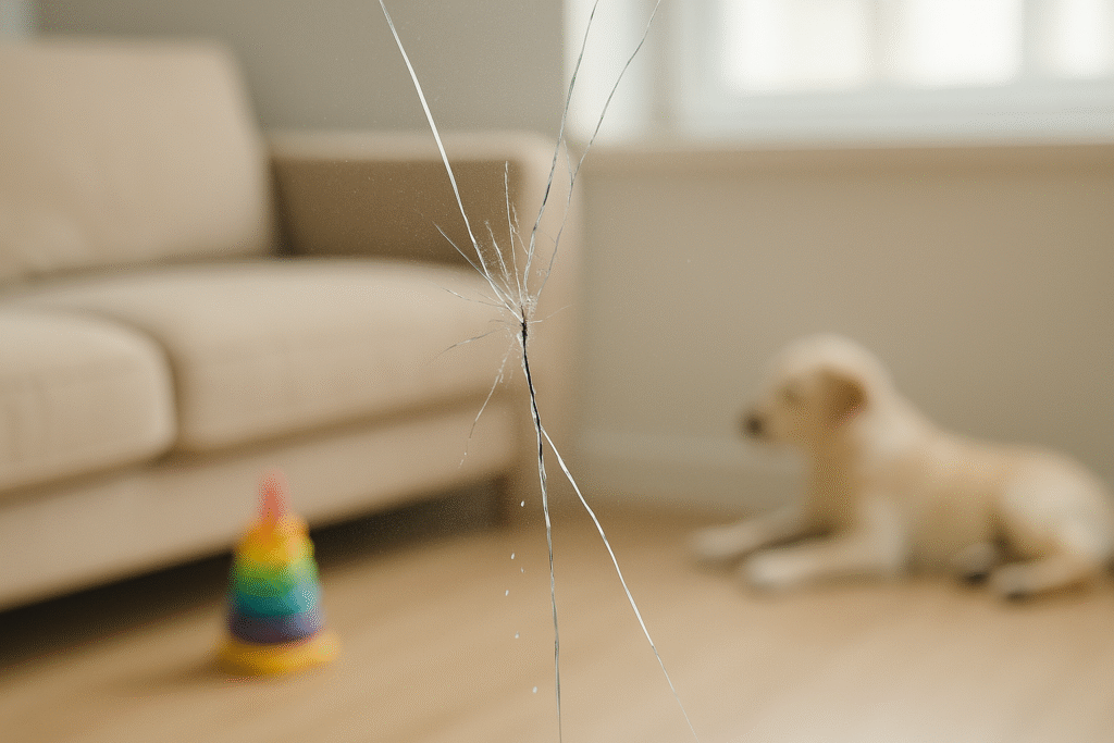 ある日突然、窓ガラスにヒビが入っていた──そんな経験はありませんか? これは【ガラスの熱割れ】と呼ばれる現象で、外気と室内の温度差や日差しによる急激な加熱などが原因で起こります。見た目は小さなヒビでも、放置してしまうとガラス片が落下してケガにつながったり、破損が広がって修理費用がかさんだりする危険があります。
