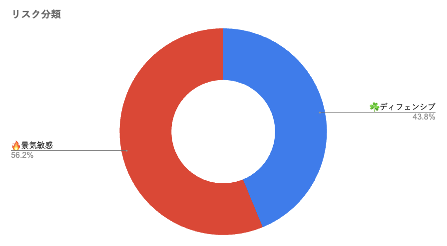 景気敏感株ばかりでは、長期的に安定して受け取れないこともあります。リスク比率を気にしながら、追加購入するセクションと銘柄を選定してください🙇