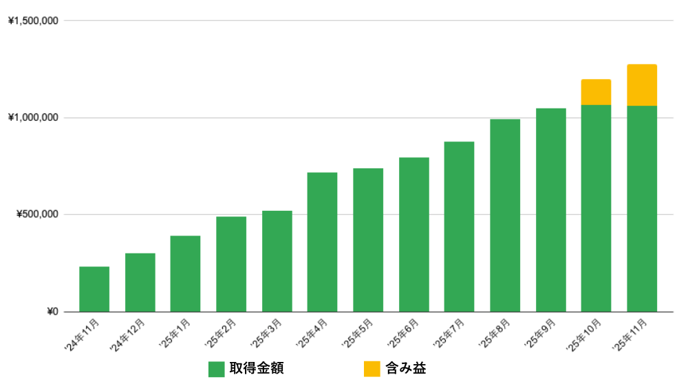 ※2025年9月以前の含み益が表示されていません。(計算してありません😅)