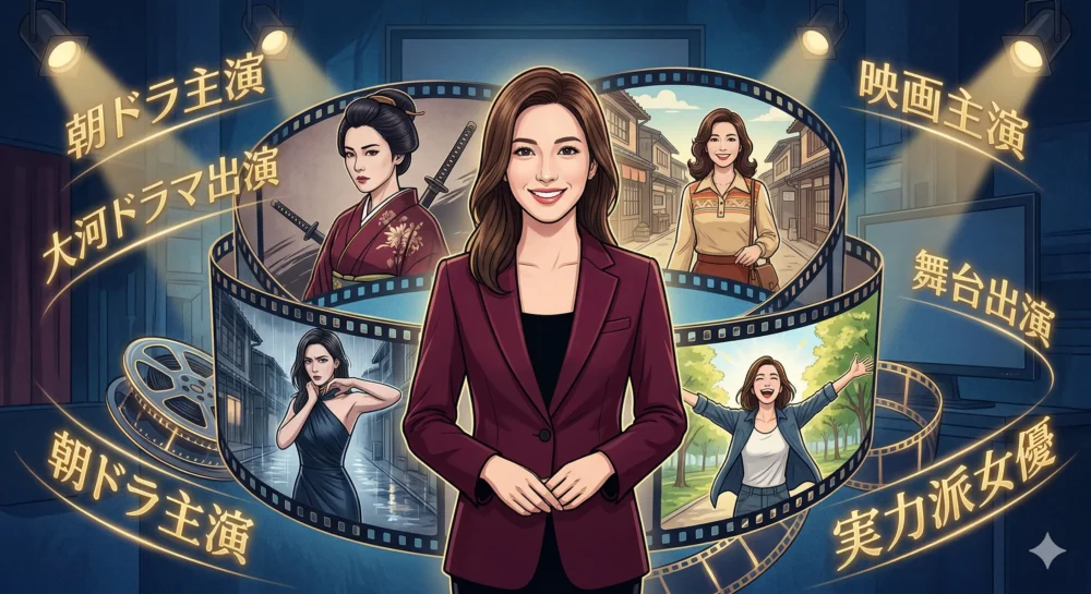 女優の年齢、プロフィールのまとめと、今後の女優としての活躍に期待が高まるイラスト。